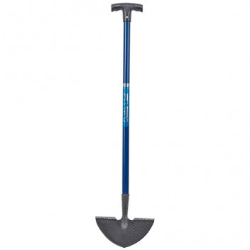Half-moon shape with turnover treads. Epoxy coated finish with head fixed to tubular steel handle. With black plastic "T" hand grip. Sold loose.Colours of product may vary