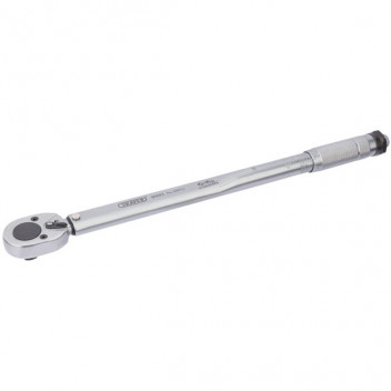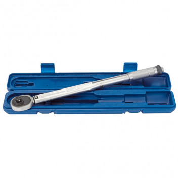 Ratchet head is engraved with Nm and lb-in scales on the barrel of the wrench. The micrometer type sleeve allows accurate preset torque values to be set. When torque is reached the wrench produces an audible click and a release of tension. Marked range: 30-210Nm/22.1-154.9lb-ft. Overall length 475mm. Supplied in blow mould storage case.