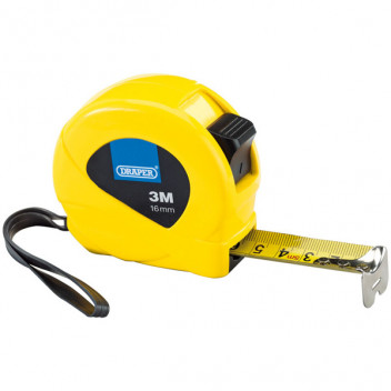Manufactured to EC Class II AccuracyBrightly coloured plastic tape measure with locking button and belt clip. Fitted with a quick power return blade with clearly noticeable metric and imperial graduations attached with a self-aligning end hook helping achieve accurate measurements. The graduations are marked from metres into cm/mm and feet into inches also marked for convenience are stud centre markings every 16".