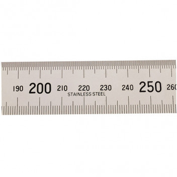 Expert Quality, precision rules manufactured from hardened stainless steel matt chrome plated. The clear black graduations of 0.5mm, mm, 0.5cm, cm and 1/64", 1/50", 1/32", 1/20", 1/16", 1/10", 1/2", and inches on the reverse are permanently etched for long service life. Packed into vinyl wallets. Display packed.